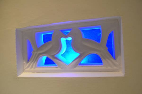 <神農屋>牆邊鳥紋鏤空夜燈。