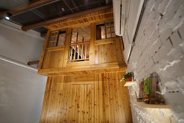 嬌巧而舒適的公共區,運用自製木架營造出放鬆的鄉村氛圍,